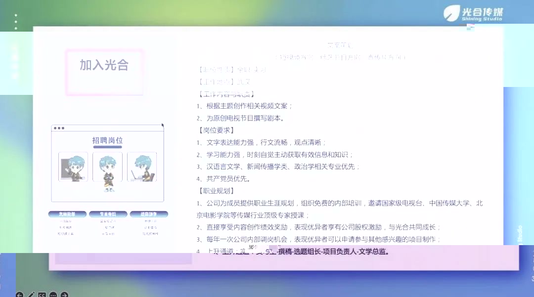 招聘信息 01、文案策劃 (短視頻方向、綜藝節目方向、宣傳片方向)