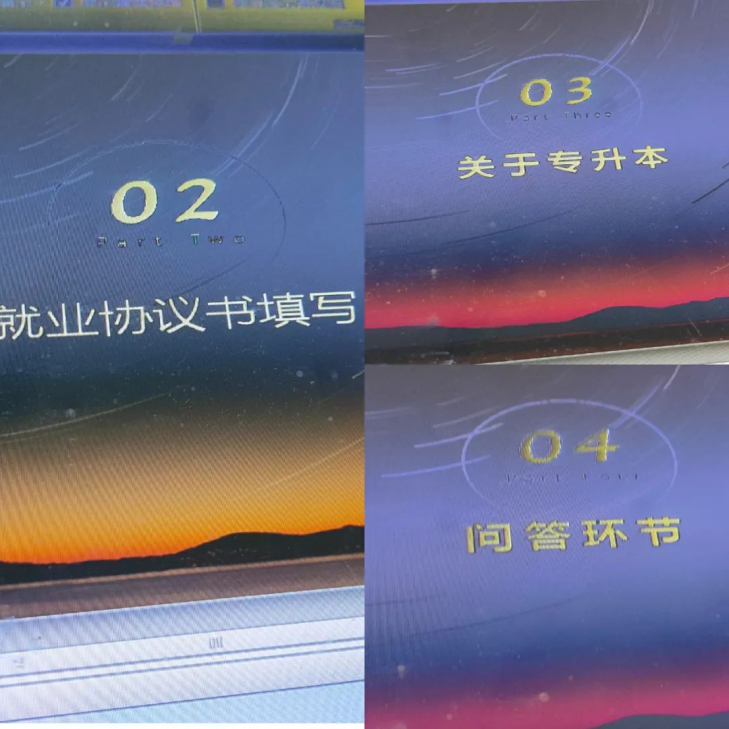 随後,來自采編Z1801班團支書楊烈文同學主要從從實習就業和專升本兩方面為同學們排疑解惑。PPT中介紹了就業需要的幾件東西、就業協議書的填寫和關于專升本等内容。